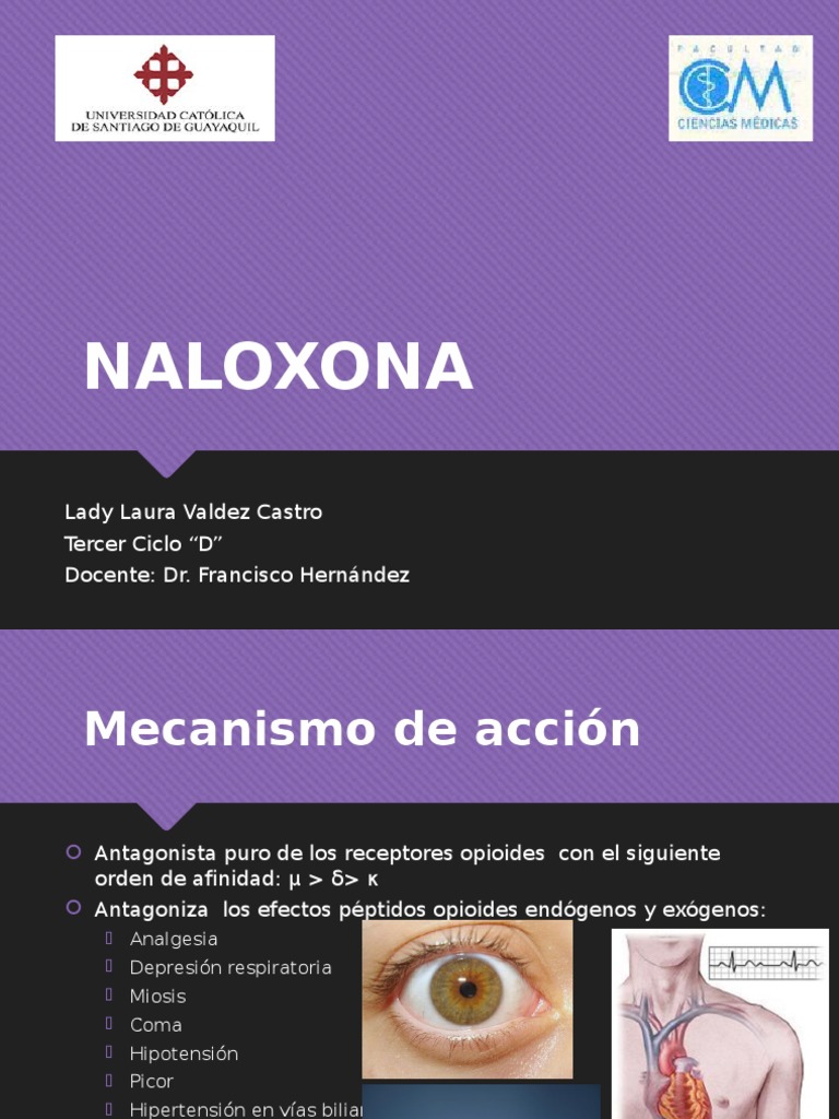 Braun seine zusammensetzung, anwendung, informationen zu überdosierung und kontraindikationen. La naloxona es un medicamento que revierte rápidamente una sobredosis de opioides. La naloxona es un antagonista de los receptores opioides, muy usado en el tratamiento de la intoxicación aguda por opiáceos por ser antagonista de estos. Es un antagonista opioide, es decir, se adhiere a los . Los pacientes que han recibido hidrocloruro de naloxona para revertir los efectos de los opioides deben ser advertidos de no conducir, operar con .